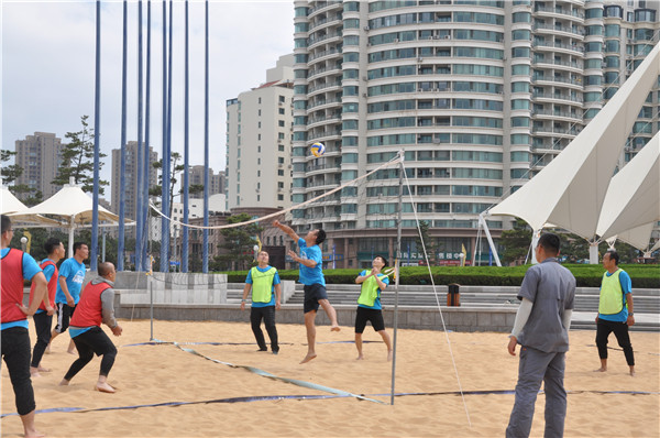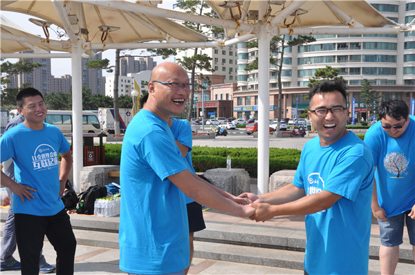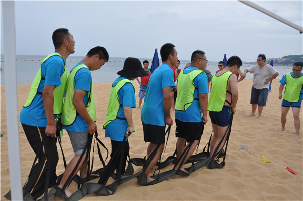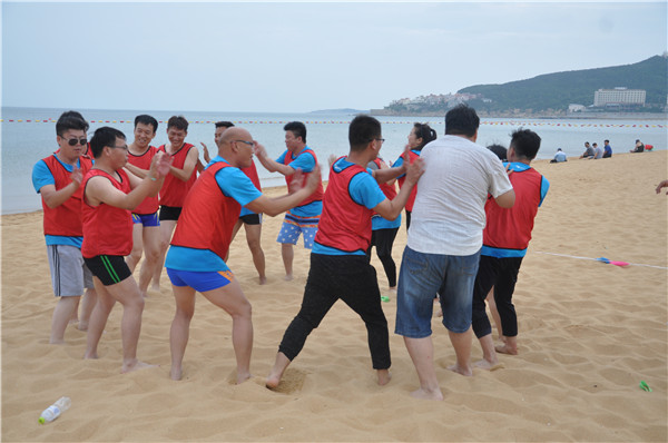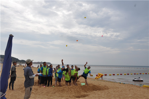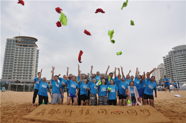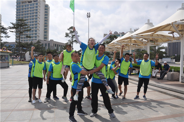 在烈日炎炎的威海海边,嘉配科技山东团队的伙伴们,挥洒汗水,释放自我,团结一致,携手并进。