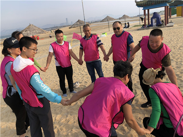 2019东极生物科技团队拓展训练活动 返回列表 2019年10月1日。在中国成立70周年国庆,上午大家看完阅兵仪式,下午就来到了养马岛沙滩,和烟台睿革教练们组织了一场半天的拓展训练活动。十月的风,还不是那么凉,大家在沙滩上还可以尽情玩乐,团队协作做一些拓展项目。相信半天的时间大家都能得到一些收获。